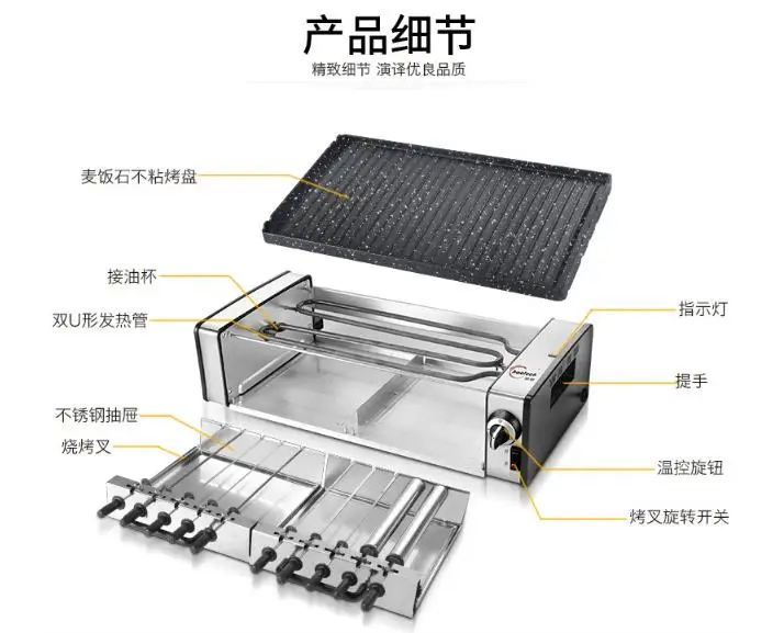 Product Name: 多機能調理鍋の中の焦げ付き防止電気ロータリー無煙電気バーベキューグリル家庭用バーベキューストーブ用
